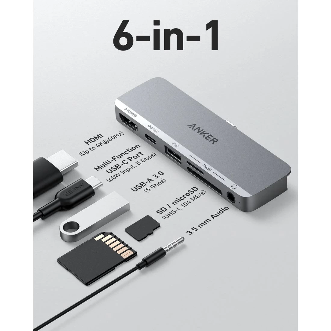 Anker 541 USB-C Hub (6-in-1, for iPad) – Grey
