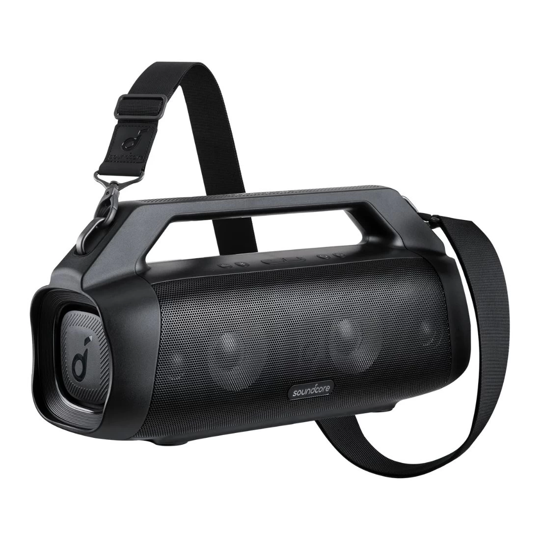 - Epic Outdoor Sound:80W booming sound is delivered by two 30W woofers and 10W tweeters, while real-time intensified bass can be heard with Soundcore’s proprietary BassUp technology. To improve treble performance of Motion Boom Plus outdoor speaker, titanium drivers ensure an all-around epic sound.