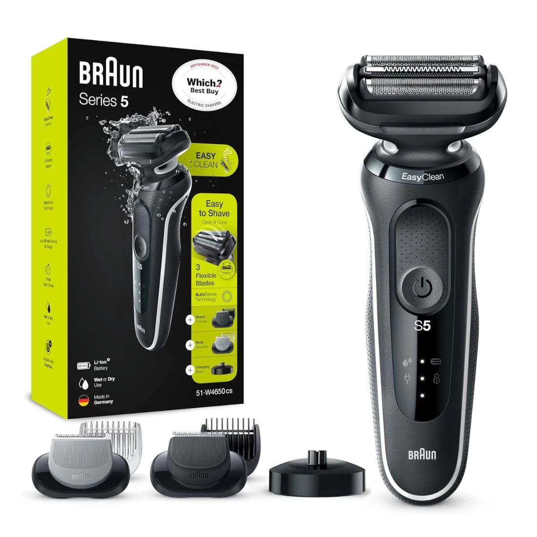 Braun Series 5 Easy Rinse Electric Shaver with Beard Trimmer Head & Charging Stand