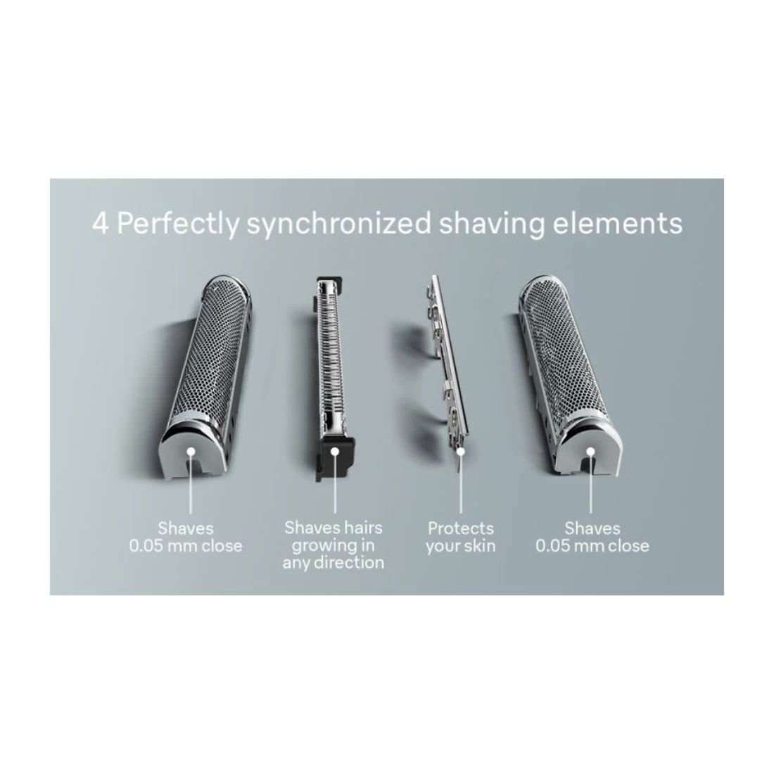 The compact 40° swiveling head closely adapts to your facial contours, delivering a gentle & close shave of up to 0.05mm-even in hard-to-reach areas. - Powerful, yet gentle shave even on dense beards