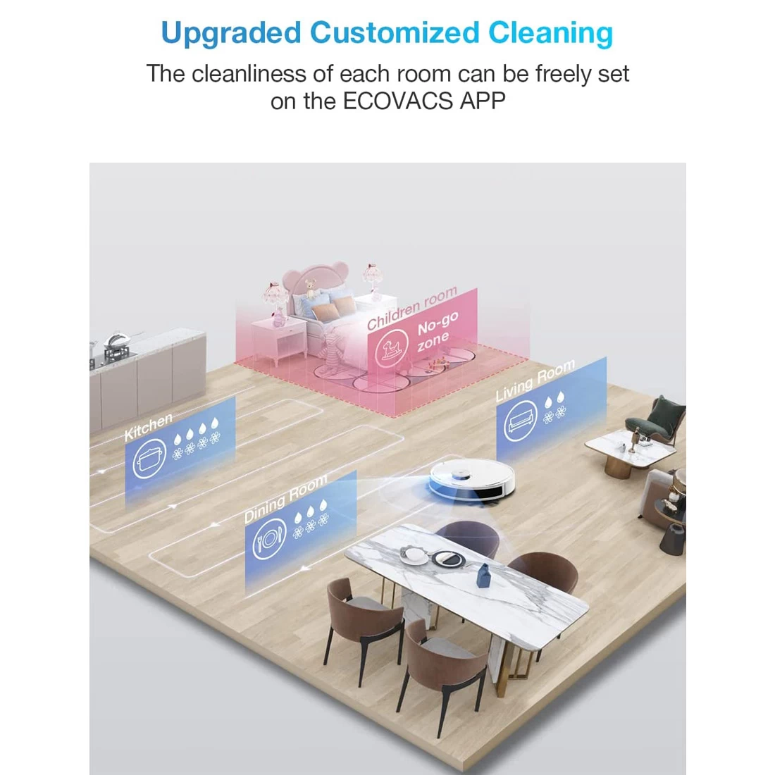 As a technological pioneer, ECOVACS launched the laser-based mapping and navigation technology known as TrueMapping as an industry first in the area of household robots. In a matter of seconds, the DEEBOT N8 uses the technology to create a map of its surroundings and move safely around your home. - Mapping of several levels