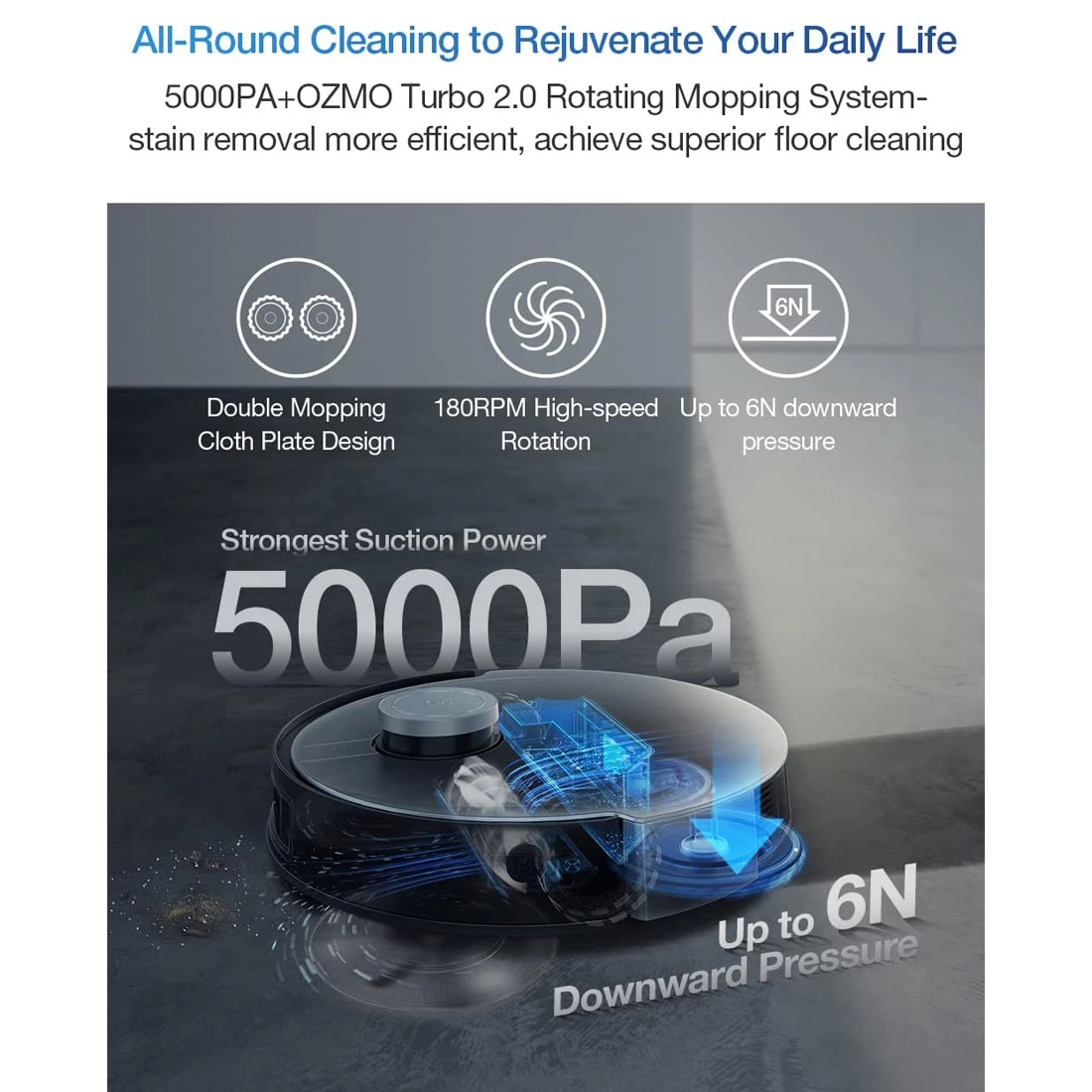 The unique OZMO™ Turbo 2.0 Rotating Mopping System, equipped with rotates up to 180 times per minute for deep cleaning. - 5000Pa Suction Power