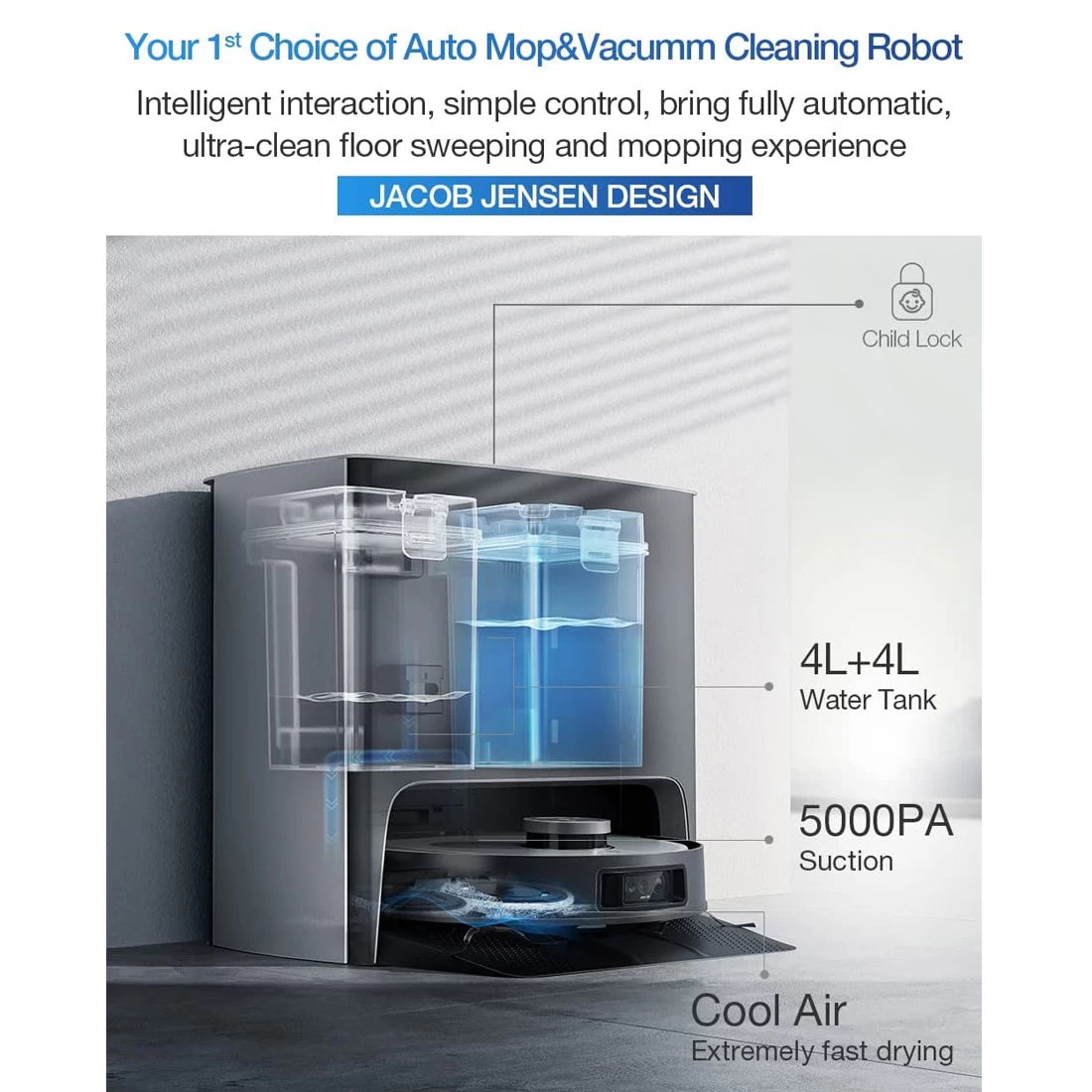 The suction power is increased by 230% to 5000Pa for a lasting clean, and effectively vacuum dust off of both hard floors and carpets. - AIVI 3D