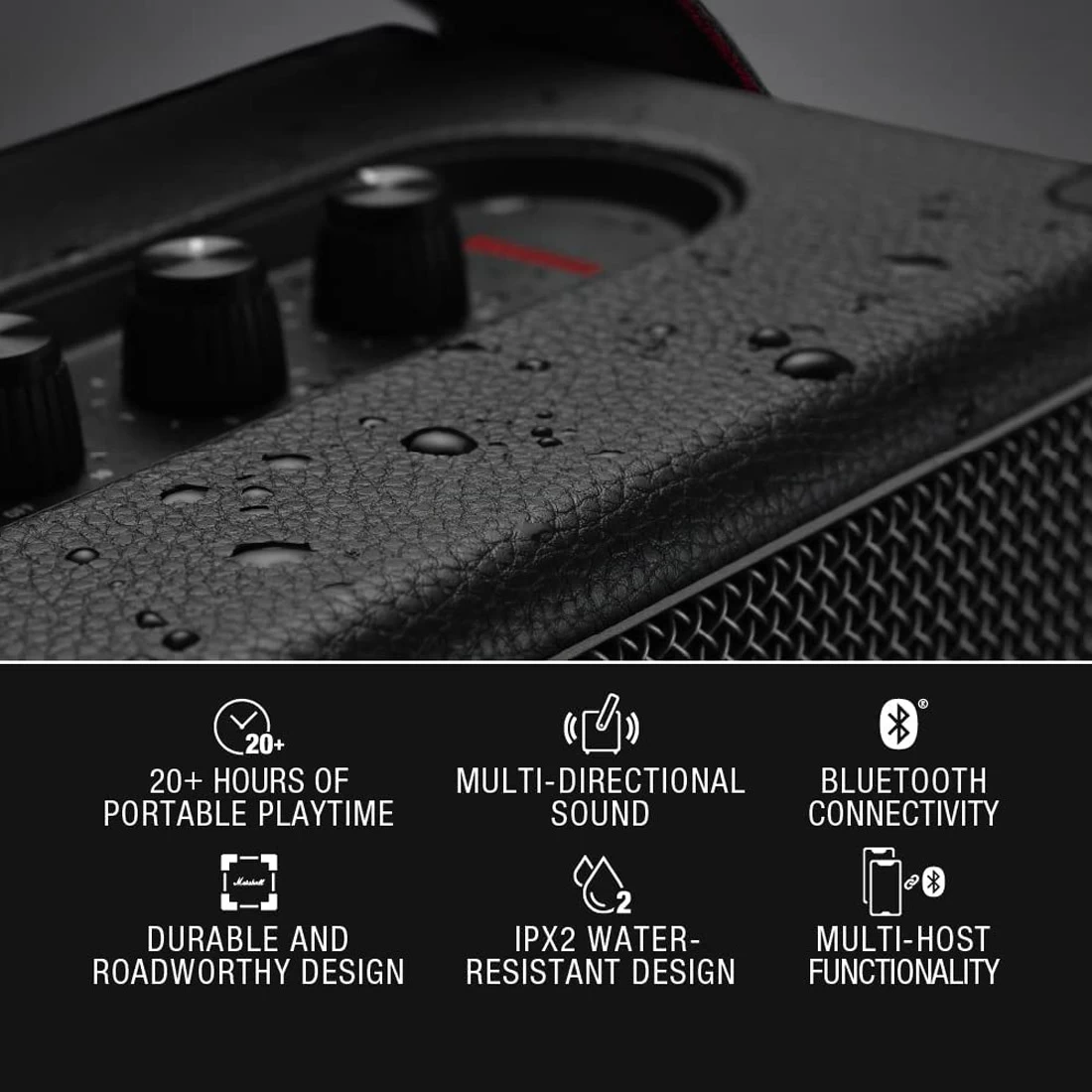Kilburn II comes equipped with Bluetooth 5.0 aptX technology for wireless music play. Play music with any Bluetooth device at a range of up to 30 feet away from the speaker. - Durable and Roadworthy Design
