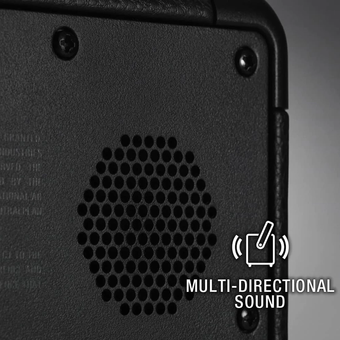 Kilburn II weighs just 2.5 kg and offers 20+ hours of portable playtime on a single charge. Its compact size and guitar inspired carrying strap make it perfect to take with you. You can track the speaker’s battery life with the visual battery indicator located on the top panel of the speaker. - Multi-Directional Sound
