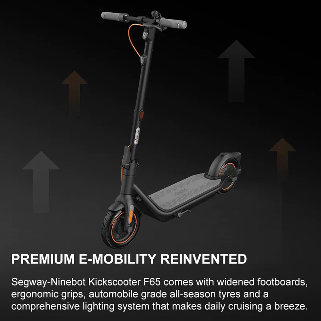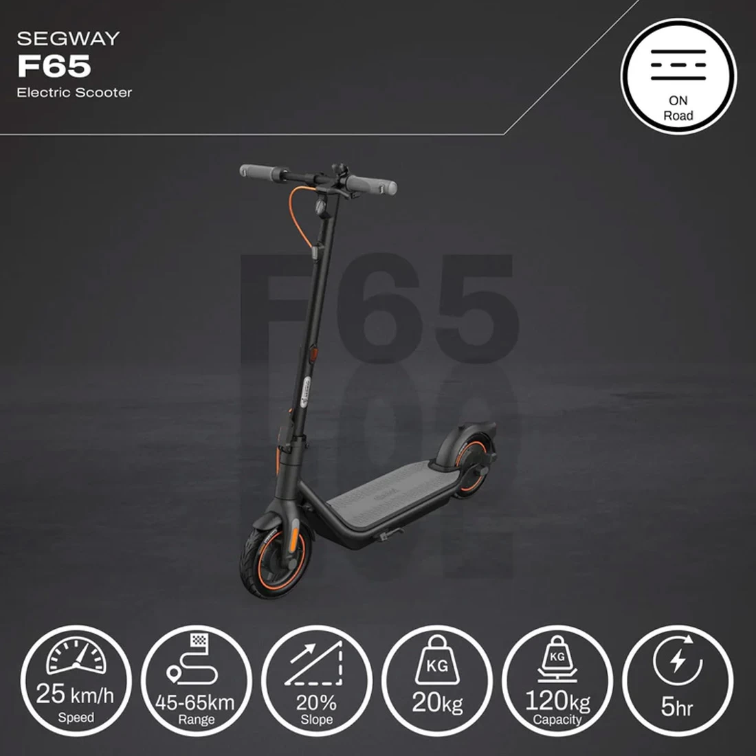 The F65 has a top speed of 25km/h, 65km battery life and a powerful motor rated to climb slopes of 22%. - Premium Riding Experience