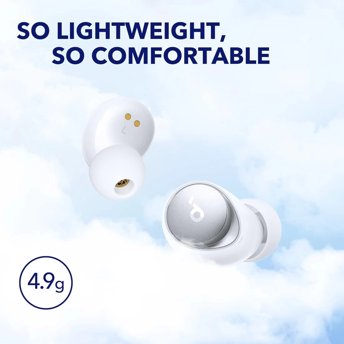 Space A40’s ergonomic build is smaller than all previous soundcore ANC earbuds for day-long comfort.