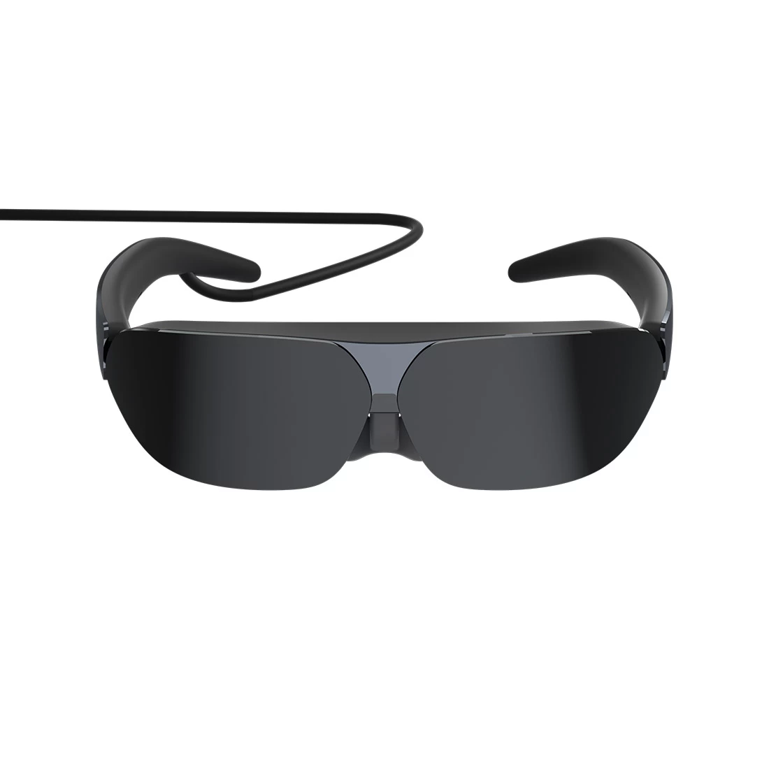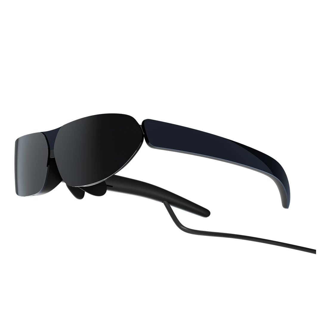 Smart glasses weigh just 100g. USB-C cable adds only 30g, ensuring a steady connection with your smartphone, tablet, or laptop without additional charging needed. A display follows your motions, so you can move freely to enjoy your private viewing anywhere, anytime. - See Surroundings
