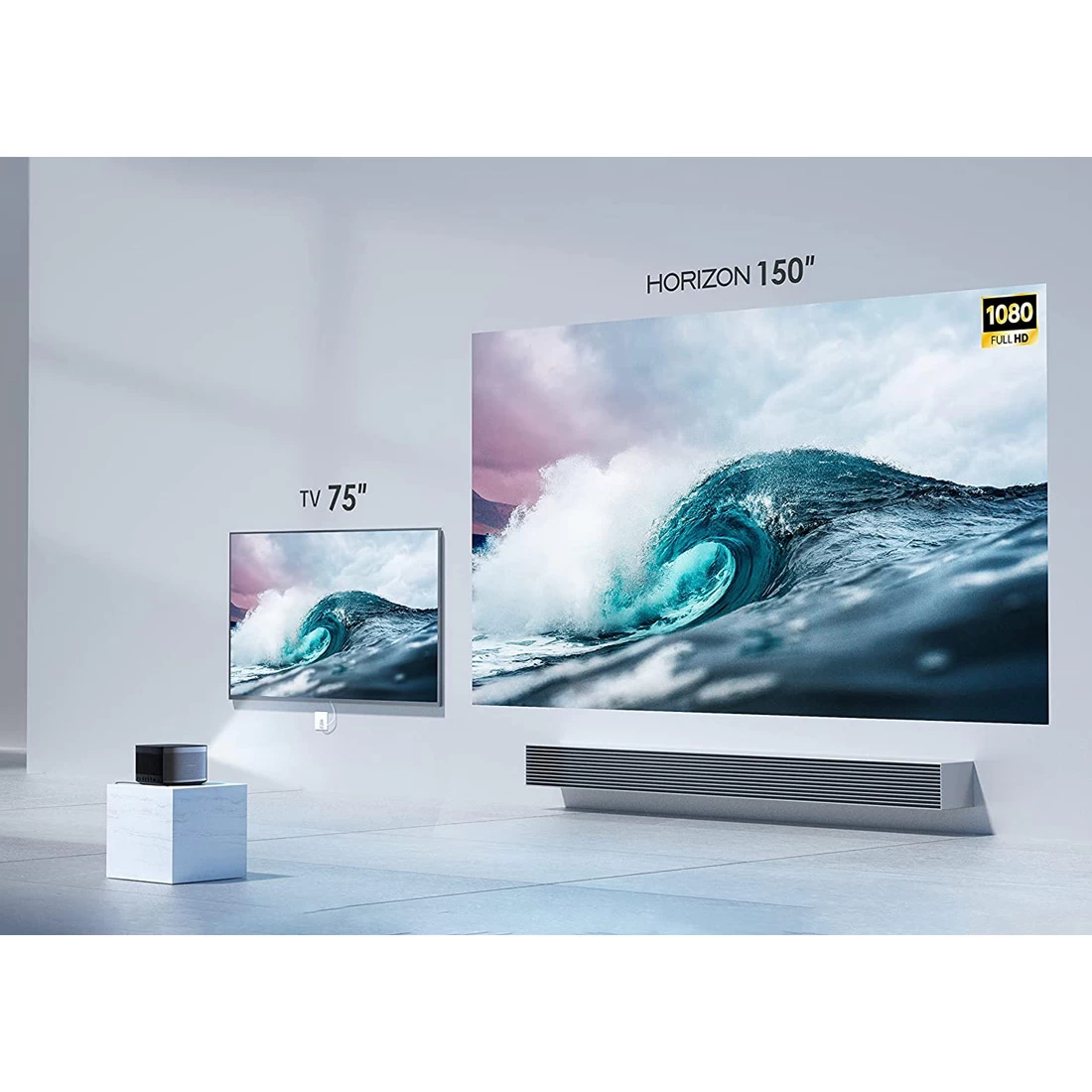 HORIZON brings you the crystal clear 1080P image quality, up to a gigantic screen size of 300”. With resolution up to 1920x1080P, you can take game night to the next level, or have an ultra HD date with your favorite movie. No more choosing portability and screen size or picture quality; HORIZON has all the bases covered. - We’ve Always Been Bright